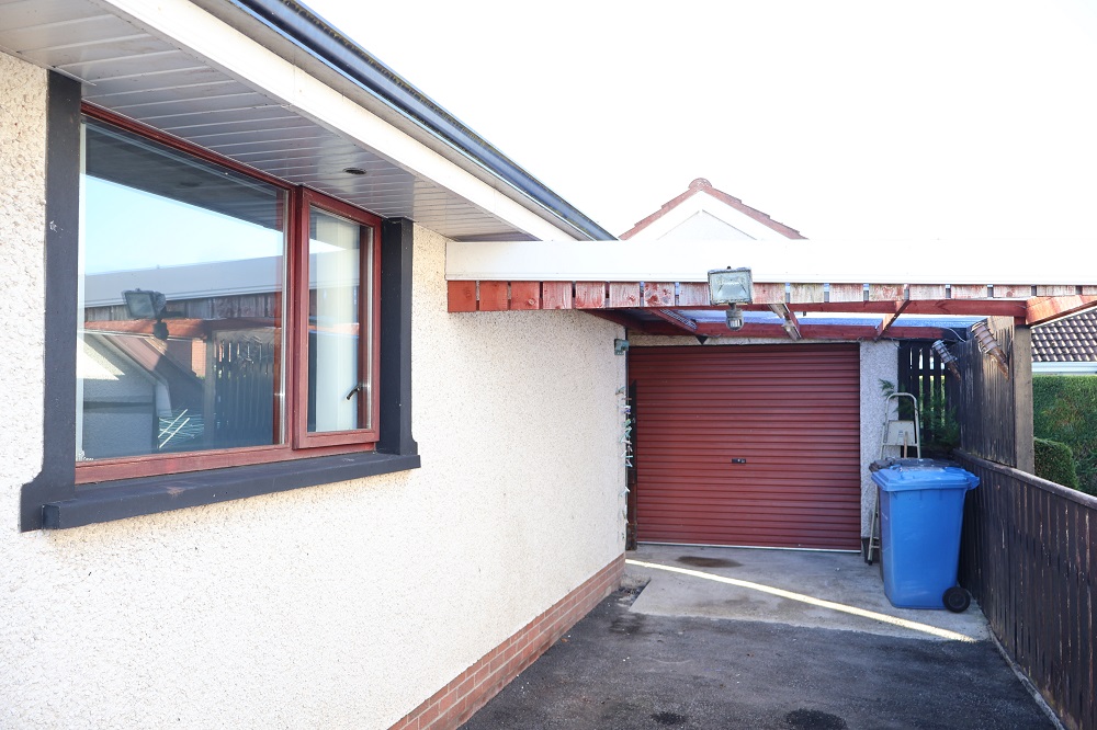 Small front garden laid out in lawns with tarmac driveway to side leading to Car Port and Detached Garage. Rear garden laid out in lawns enclosed by wall, timber fence and gates. Outside lights and water tap. PVC oil tank.