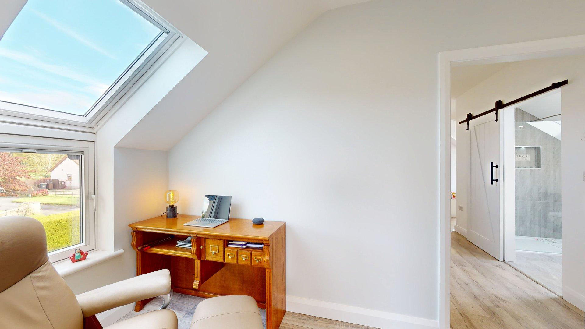 19'2 x 6'0 Feature, modern staircase with Oak steps, handrail and glass balustrade. Smoked Oak floor. Recessed lights to ceiling. Velux double glazed windows. Workstation area.