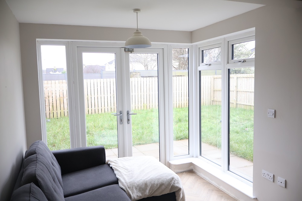 6'10 x 7'8 Vinyl wood effect floor. Feature corner window. uPVC French Doors leading out into south east facing rear garden.