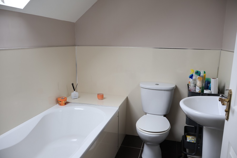 • Bathroom To First Floor Comprising White, Modern 3 Piece Suite.