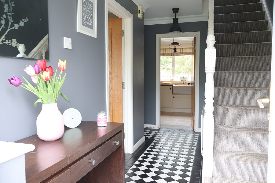 uPVC front door with double glazed centre and side lights. Harlequin tiled floor. Ceiling cornicing. Ornate staircase with understairs. Cloakroom/Storage Cupboard.