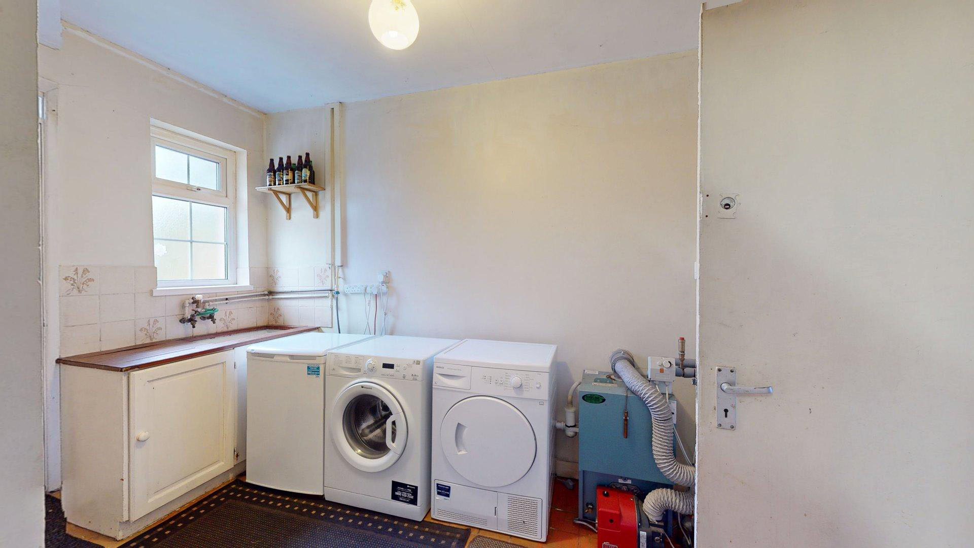 11'8 x 6'8 Base unit with BELFAST sink unit. Plumbed for washing machine. Grant Euroflame, condensing oil fired boiler. Doorway leading into integral garage. Rear door leading out into southwest facing rear garden.