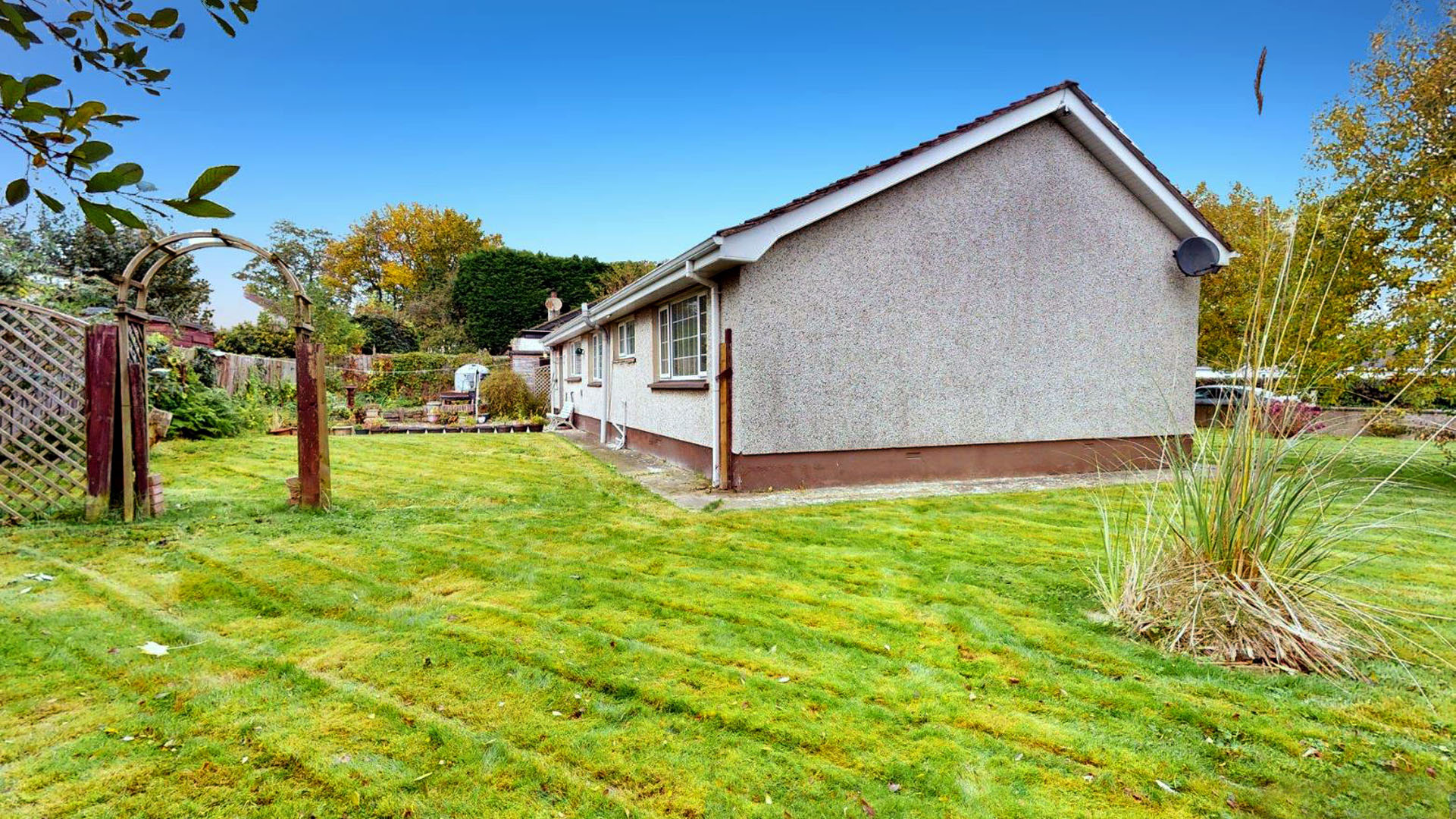 Excellent corner site with mature gardens to front, side and rear of dwelling laid out in lawns, plants shrubs and trees enclosed by wall, fencing and gates. Concrete driveway leading to Integral Garage. Patio area to south west facing rear garden. Outside lights and water tap. Garden Shed. PVC oil tank.
