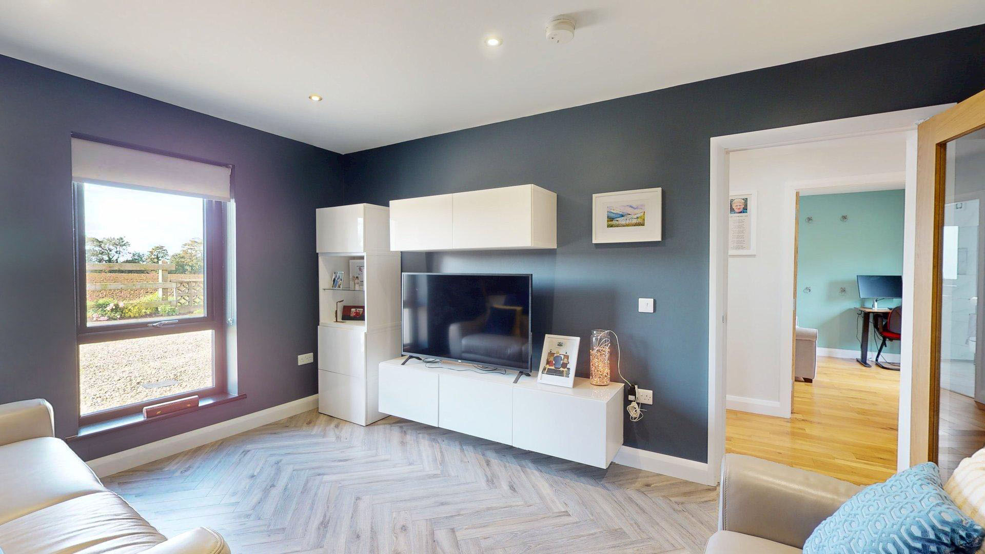 Integral dishwasher and fridge/freezer. NEFF double eyelevel oven and NORDMENDE 4 ring Induction hob with feature splashback. Oak glass panelled door leading into hallway. Feature high vaulted ceiling. Hole-in-wall fireplace housing Cast Iron, cassette multifuel fire. Landscape, Picture corner window. uPVC French doors leading out unto paved patio area.