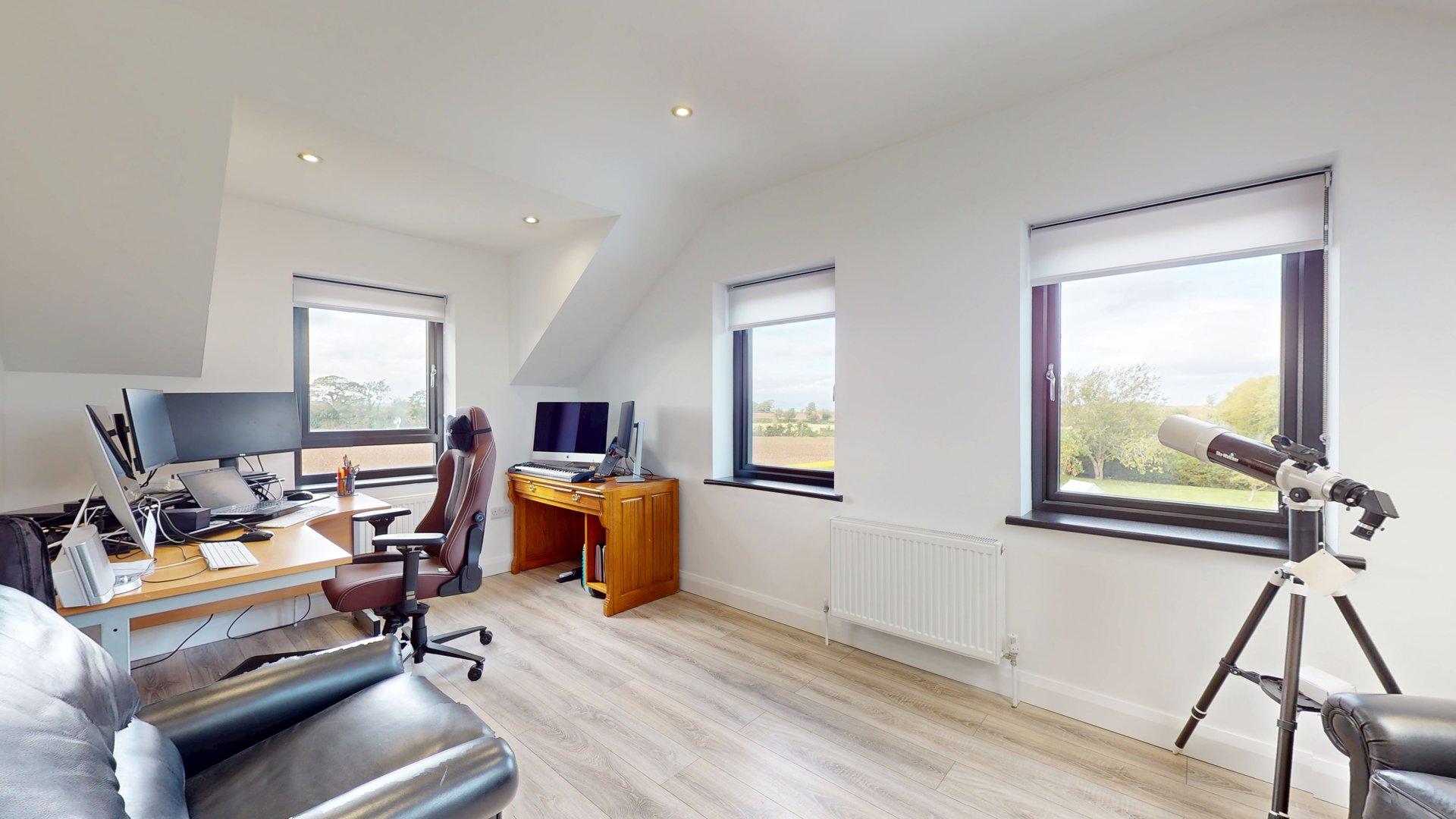 19'2 x 9'6 Built in storage units with open shelving. Ash flooring. Recessed lights to ceiling. Twin windows enjoying delightful views of Donegal Hills. N.B. This room can easily be divided into two rooms providing a 4th Bedroom if required.