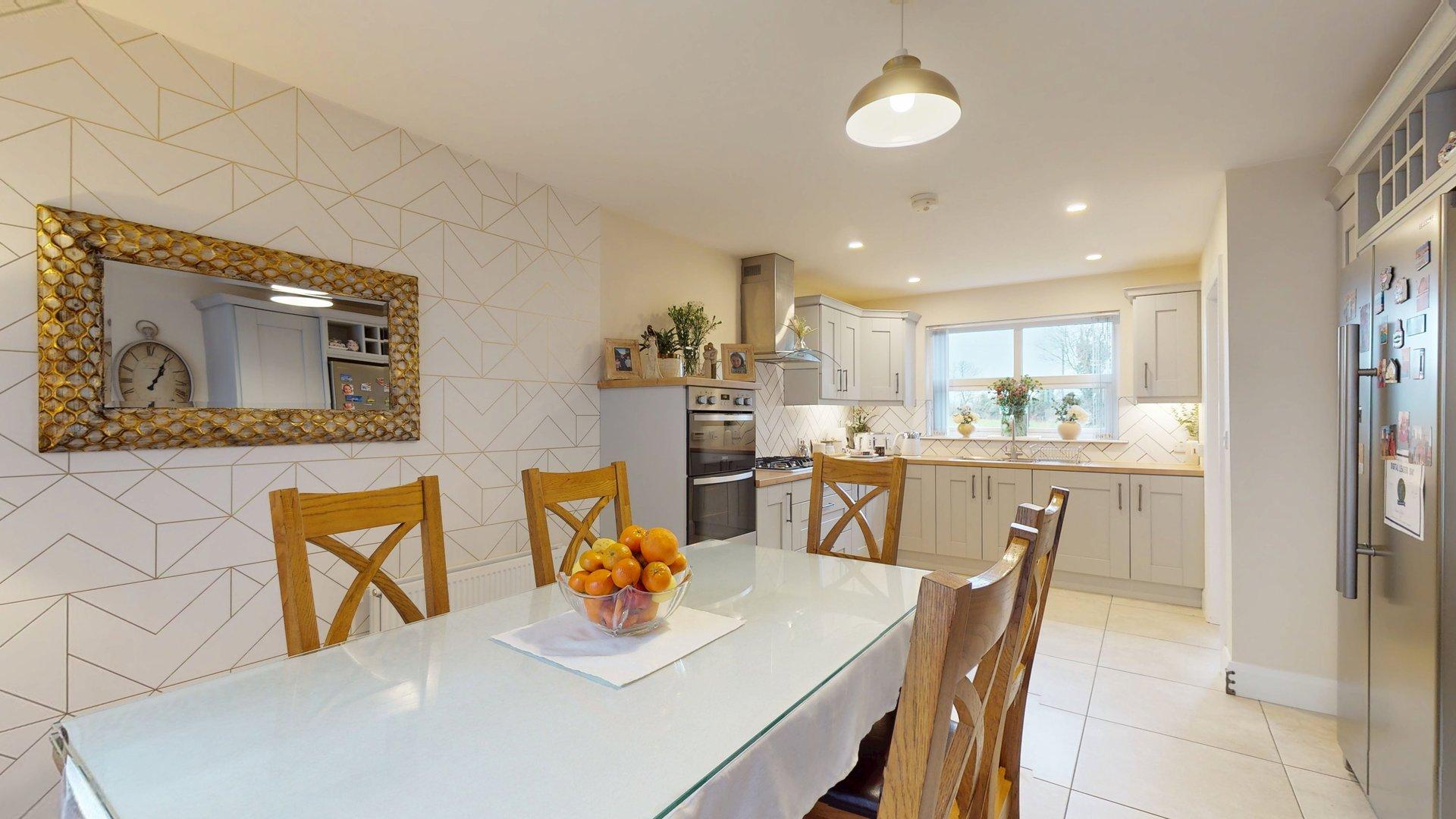 • Kitchen Through Dining Area With Superb Range Of Contemporary Shaker Style Units Incorporating American Style Fridge/Freezer, Hob and Oven.