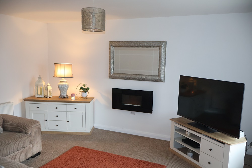 • Living Room With Feature Wall Mounted, Electric Fire.