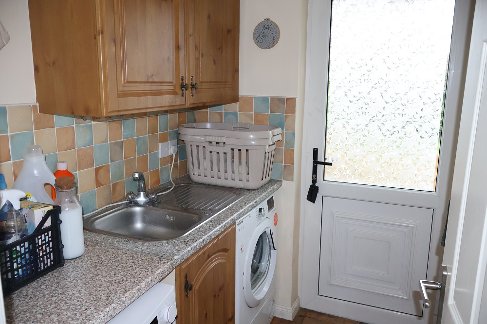 6'2 x 5'4 Good range of built in units with matching worktops and stainless steel sink unit and single drainer with mixer taps. Part tiled walls. Tiled floor. Plumbed for washing machine. uPVC rear door with double glazed centre light.