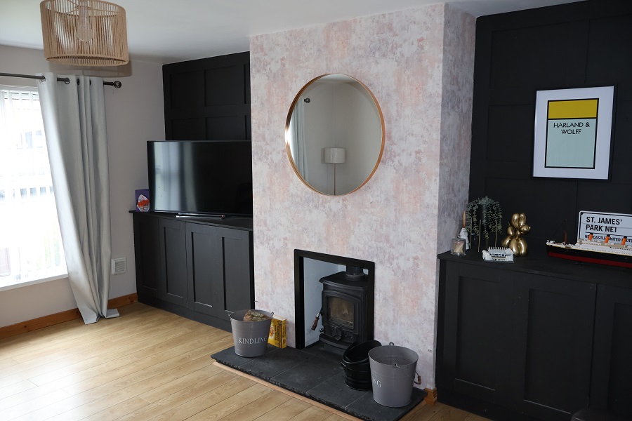 • Spacious Living Room With Feature Hole-In-Wall Fireplace Housing Cast Iron Multifuel Stove.