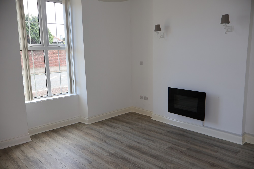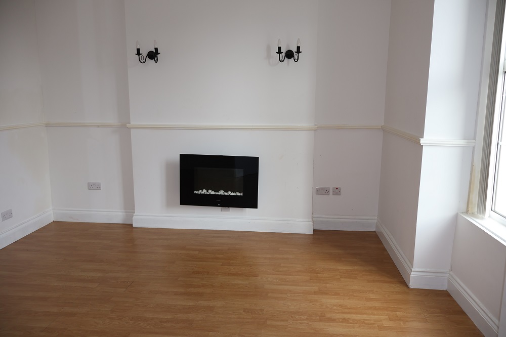 13'3 x 12'10 Feature wall mounted electric fire. Laminate wood flooring. Points for wall lights.