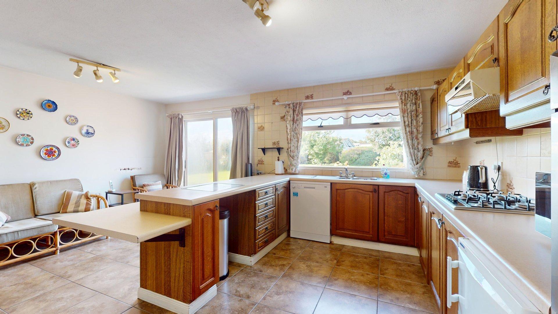 18'8 x 13'8 Good range of Chestnut units with matching worktops and breakfast bar. Stainless steel one and quarter bowl sink unit and drainer with mixer taps. Part tiled walls. Tiled floor. Plumbed for dishwasher. BELLING eyelevel electric oven and NEFF 4 ring gas hob. Patio doors leading into south west facing rear garden.