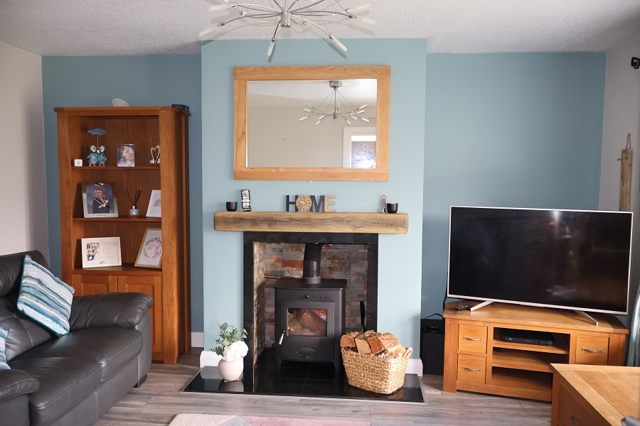 • Living Room With Feature Hole-In-Wall Housing Cast Iron Multifuel Store With Back Boiler.