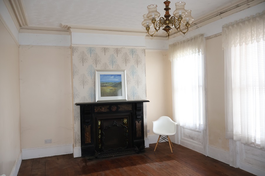 20'0 x 12'6 Original cast iron fireplace with tiled inset and slate surround. Redwood floor. Ornate ceiling cornicing.
