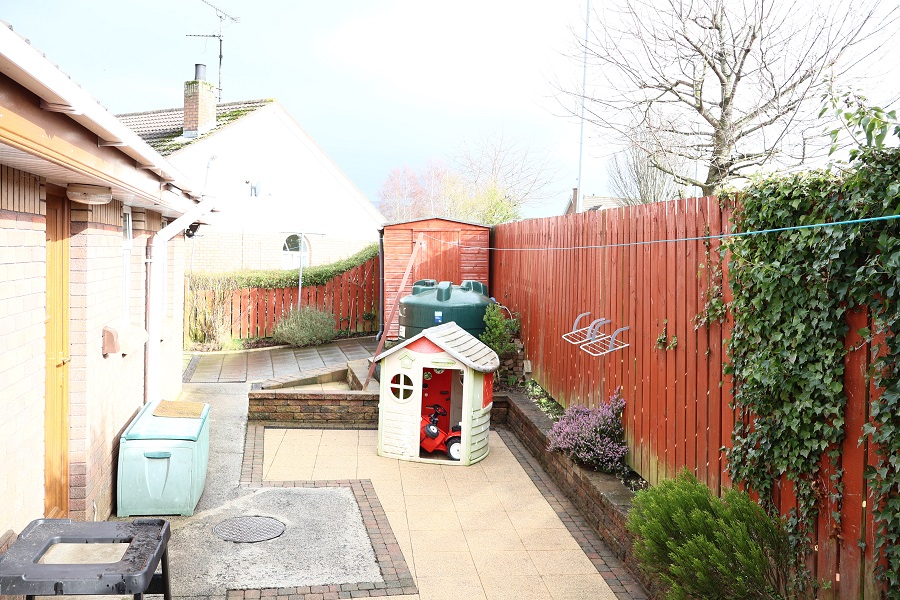 Front garden laid out in lawns and trees with tarmac driveway to side of dwelling leading to spacious Car Port. Paved rear garden with patio area and raised shrub beds enclosed by timber fence and gates. Outside lights and water tap. Garden Shed.