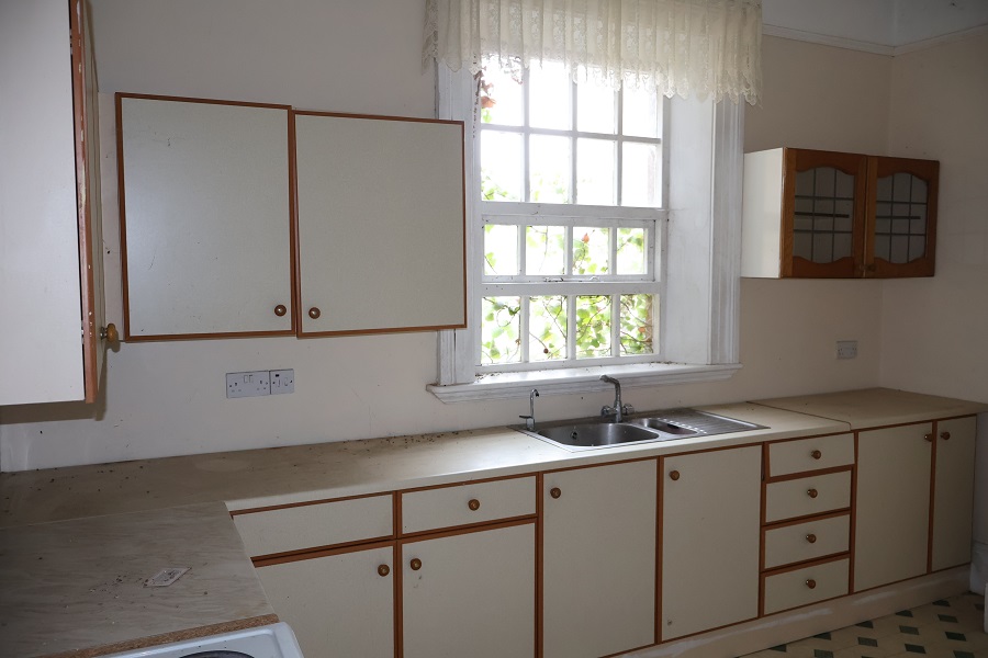 13'10 x 10'10 Range of built in units with worktops. Stainless steel one and a quarter bowl sink unit and drainer . Ceiling cornicing.